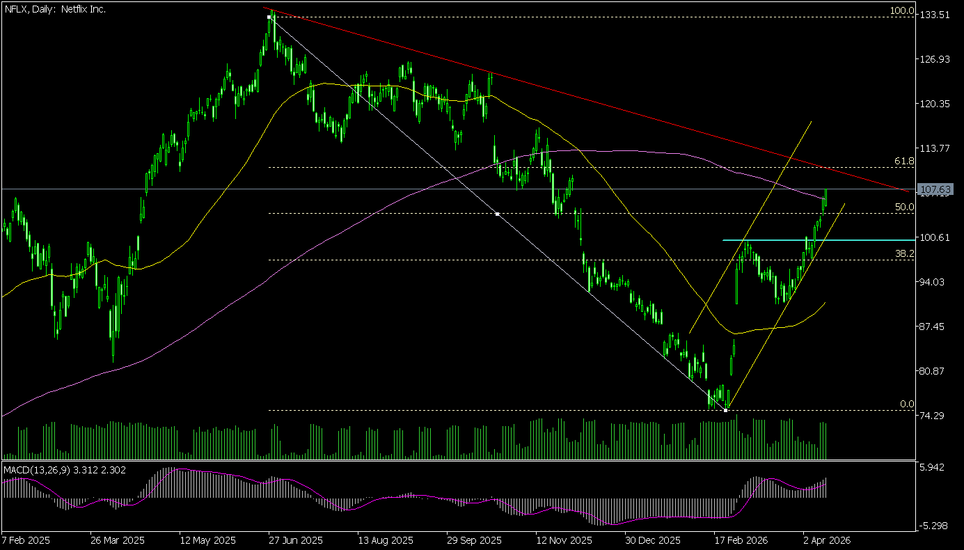 Na wczorajszej rekordowej dla Wall Street sesji, akcje Netflixa podrożały o 1,35 proc. do 107,63 USD i zakończył dzień najwyżej od początku grudnia, wracając jednocześnie powyżej 200-dniowej średniej. Wciąż jednak są one znacząco tańsze niż w połowie 2025 roku, gdy za jeden walor płacono ponad 134 USD. W ostatnich tygodniach na wykresie pojawiło się sporo sygnałów mogących zapowiadać dalsze wzrosty w stronę zeszłorocznego szczytu. Ostatecznym potwierdzeniem takiego scenariusza będzie ewentualne wybicie powyżej 110,86 USD, czyli powyżej podwójnego oporu, jakie tworzy 61,8 proc. zniesienie Fibo i linia trendu spadkowego.