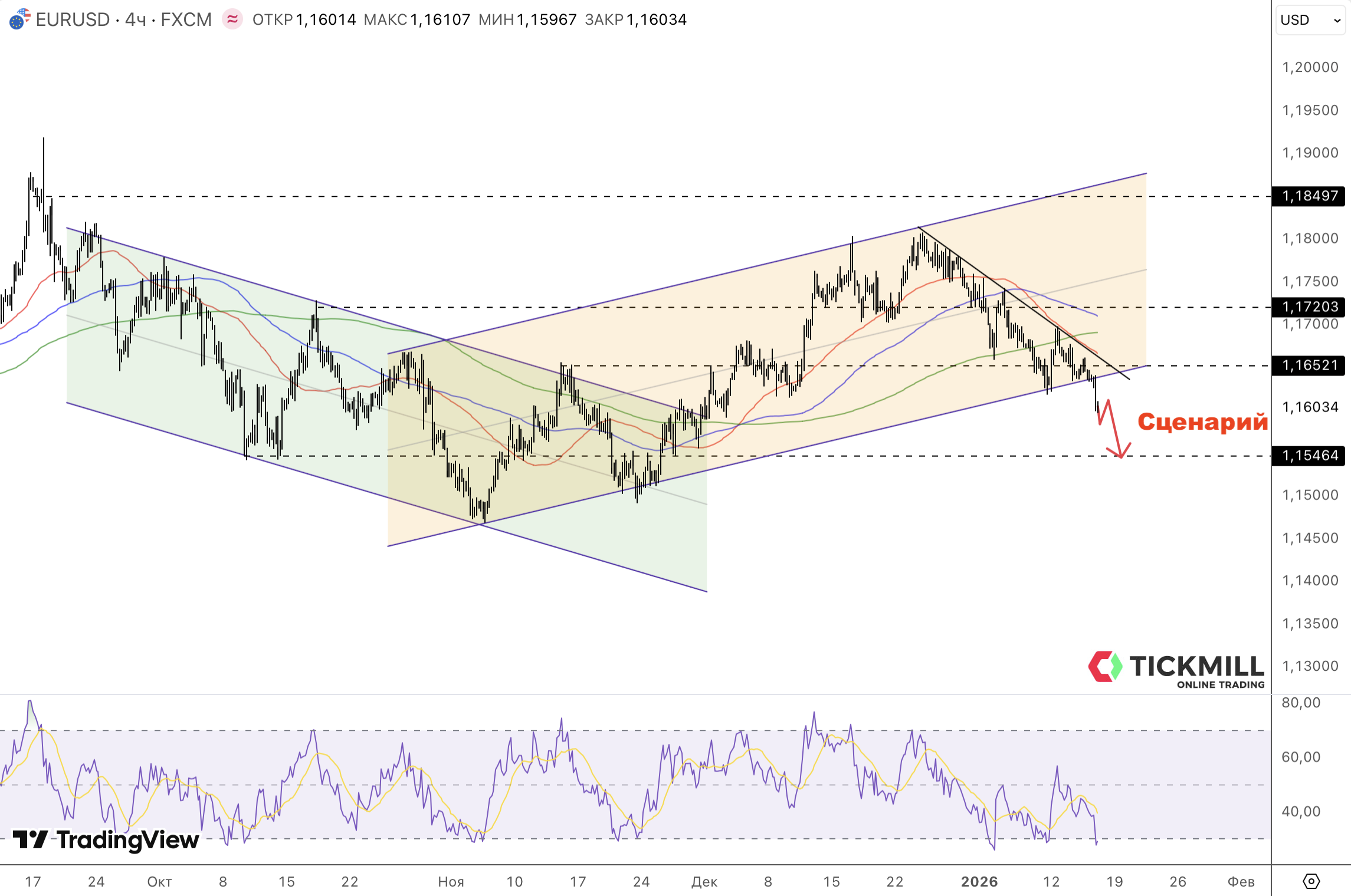 EUR/USD опустился к району 1.16, хотя утро начиналось с довольно уверенного европейского релиза, который однако не смог удержать общую валюту от падения. Промпроизводство еврозоны в ноябре увеличилось выше ожиданий (0,7% против 0,5% м/м), - цифры, которые в другой рыночной среде обычно дают евро хотя бы передышку. Но рынок сейчас больше следит за геополитикой, макро данными США и высказываниями чиновников ФРС, которые в последние несколько дней активизировались. Европейская статистика была воспринята как “хорошая, но недостаточная”, чтобы переломить медвежий тренд евро, тянущийся от максимумов конца декабря.