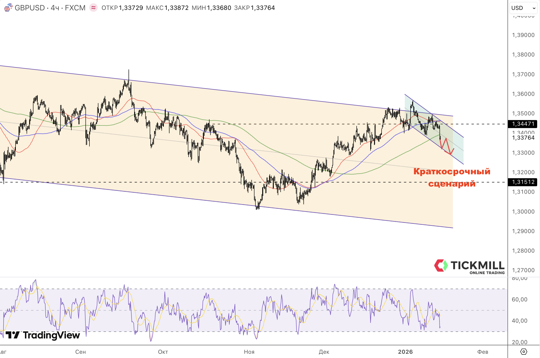 Британский фунт в этой картине выглядит отдельной линией: GBP/USD провалился под 1.34 даже несмотря на хорошие статистические релизы сегодня. Сказывается наступление доллара по всем фронтам. ВВП Великобритании в ноябре вырос на 0,3% м/м (ожидали 0,1%), отыграв спад −0,1% в сентябре и октябре (после нуля в августе). Производственный блок тоже удивил: обрабатывающее производство 2,1% м/м против прогноза 0,5%, а промпроизводство - 1,1% м/м при ожиданиях 0,1% (хотя и медленнее прежних 1,3%). Эти данные логически должны охлаждать “голубиные” ожидания по Банку Англии, даже несмотря на декабрьский сигнал о постепенном снижении ставок. Не случайно член BoE Алан Тейлор говорит о нормализации политики к нейтральному уровню “скорее раньше, чем позже”, а инфляции “у цели” с середины 2026 года - как о сценарии, который может оказаться устойчивым. Однако как уже обсуждалось в предыдущей статье, техническая картина для фунта складывалась неладная – медвежий коридор основательно не пробит (покупателей явной не находилось выше 1.35, так как был лишь короткий интрадей заскок выше, потом же пара начал медленно скользить ниже без особой борьбы и сегодня провалилась). Сформировался краткосрочный канал снижения ближайшие цели 1.3320, затем 1.3290 в рамках теста).